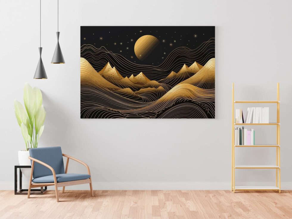 Golden round frame painting, adding an artistic flair to any modern home.